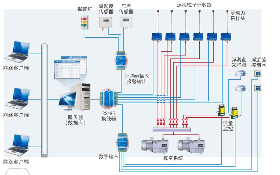 該系統主要承擔用戶生產區在線塵埃粒子監測系統的定義、實施和測試。該遠程粒子監控系統設計為具有以下主要功能: